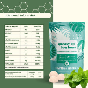 Our melt in the mouth bon-bons is specially formulated with natural peppermint oil and enriched with vitamin B6 offering a refreshing relief for morning sickness.